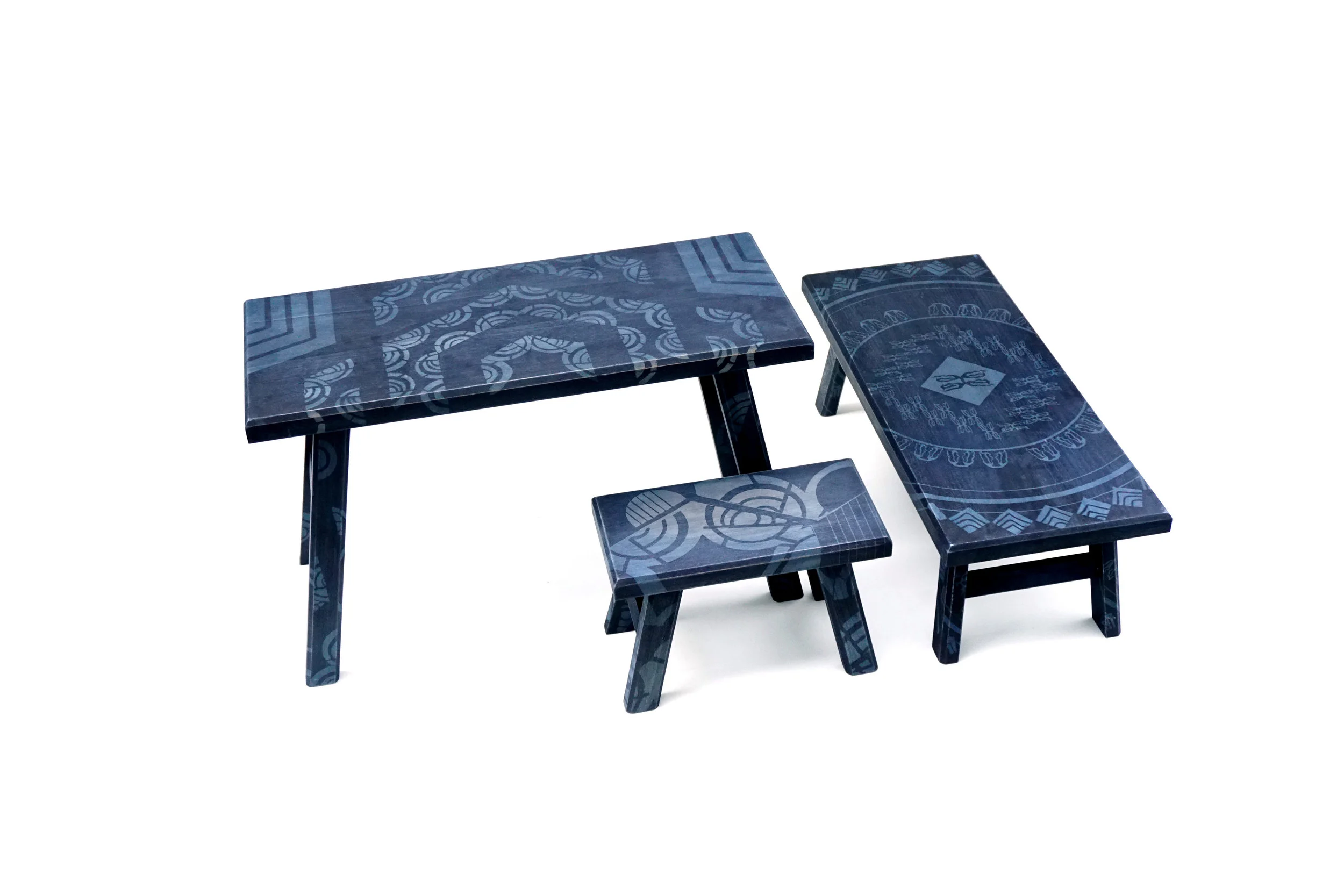 Initially working with one villager, Ng has now expanded to a group of six. Last autumn the studio launched a limited collection of lifestyle products that includes scarves, squat wooden stools and hexagonal wooden wall tiles, all of which are decorated with batik patterns normally used only for fabrics. Un/Fold is also collaborating with the upscale Shanghai furniture company Stellar Works to create custom pieces that uses artisanal fabrics and woodwork.